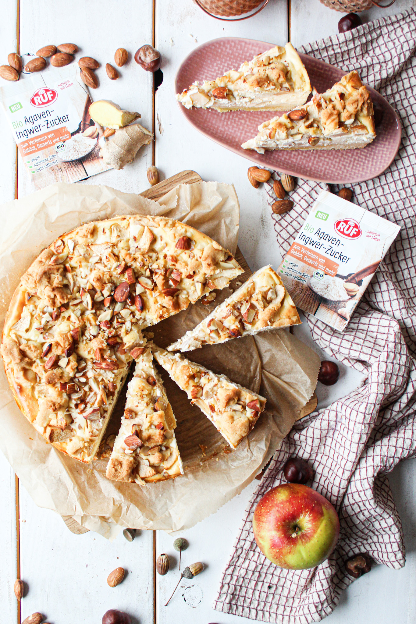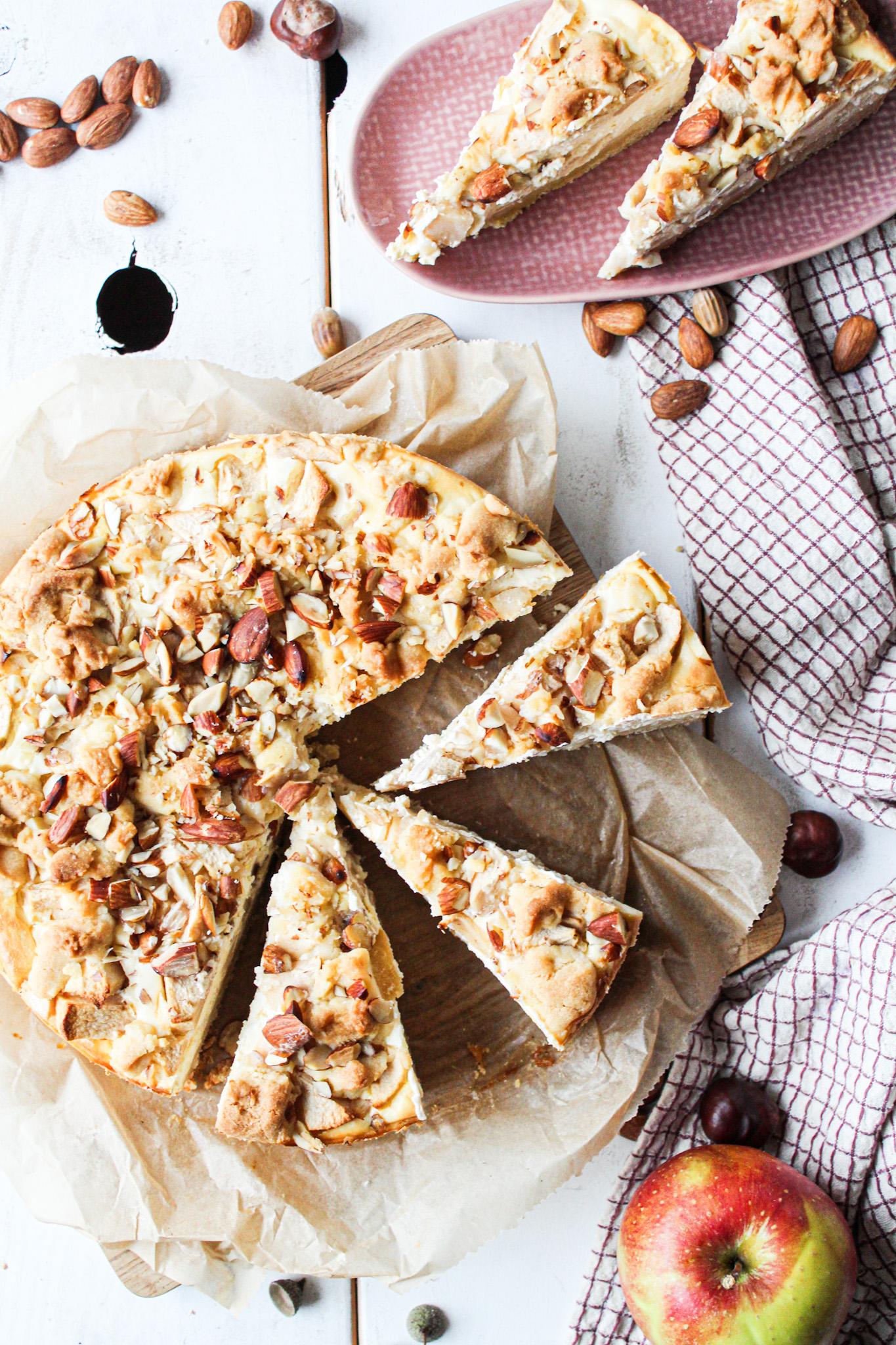 Die Äpfel aus dem eigenen Garten und dann einen frisch gebackenen Apfelkuchen, dieser Duft einfach soo köstlich. Wir haben zwar keinen Apfelbaum im Garten aber meine Schwiegermama, wo ich dann oft welche mitnehmen kann. Es gibt ja so viele Variationen an leckeren Apfelkuchen, die man zaubern kann. Ob klassisch, mit Sahne oder wie ich es dieses Mal ausgewählt habe als Käsekuchen mit einem Mandeltopping.