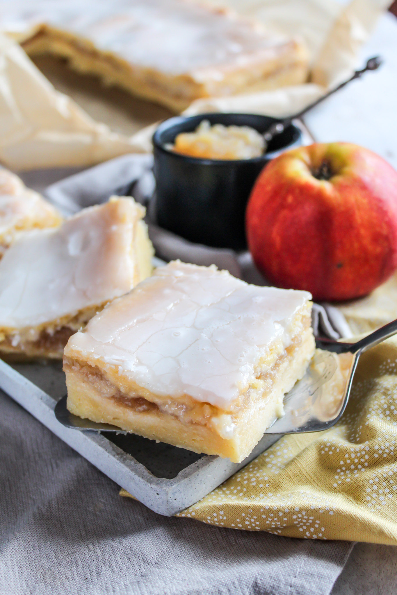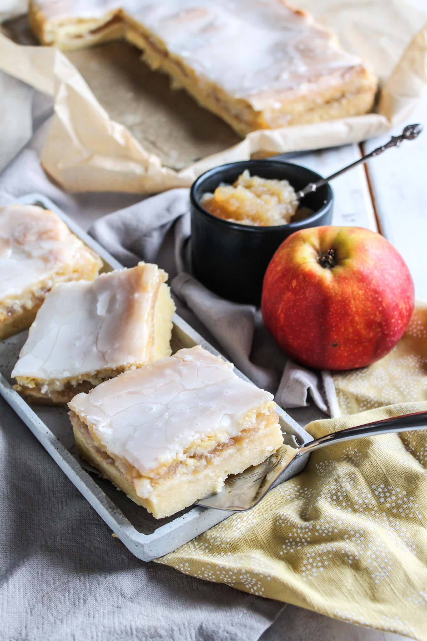 Wer kennt ihn nicht? Den leckeren und saftigen Apfelmuskuchen vom Lieblingsbäcker nebenan. Ich mag dieses Stück Apfelkuchen total gerne und wollte ihn aber unbedingt mal selber ausprobieren. Das dies so einfach und schnell geht,muss ich zugeben hätte ich nicht gedacht. Man könnte sagen ein Kuchen,den definitiv jeder backen kann und dazu noch super lecker schmeckt.