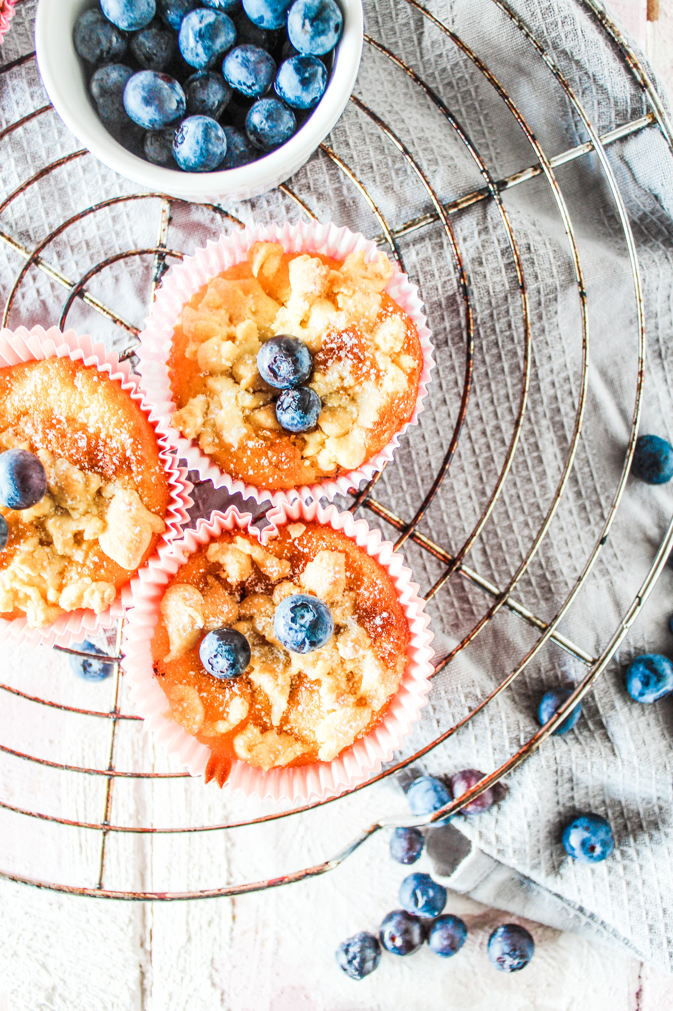 Zwei Vorgaben gab es von unserem Sohn, die unbedingt rein sollten in die Muffin. Blaubeeren und Streusel… Ich muss sagen definitiv einer meiner absoluten Lieblingsmuffins jetzt.. Ihr könnt natürlich wählen ob ihr frische Blaubeeren nehmt oder die tiefgefrorenen. Da aktuell noch nicht die Blaubeerzeit ist im Garten, habe ich mich für die tiefgefrorenen entschieden.