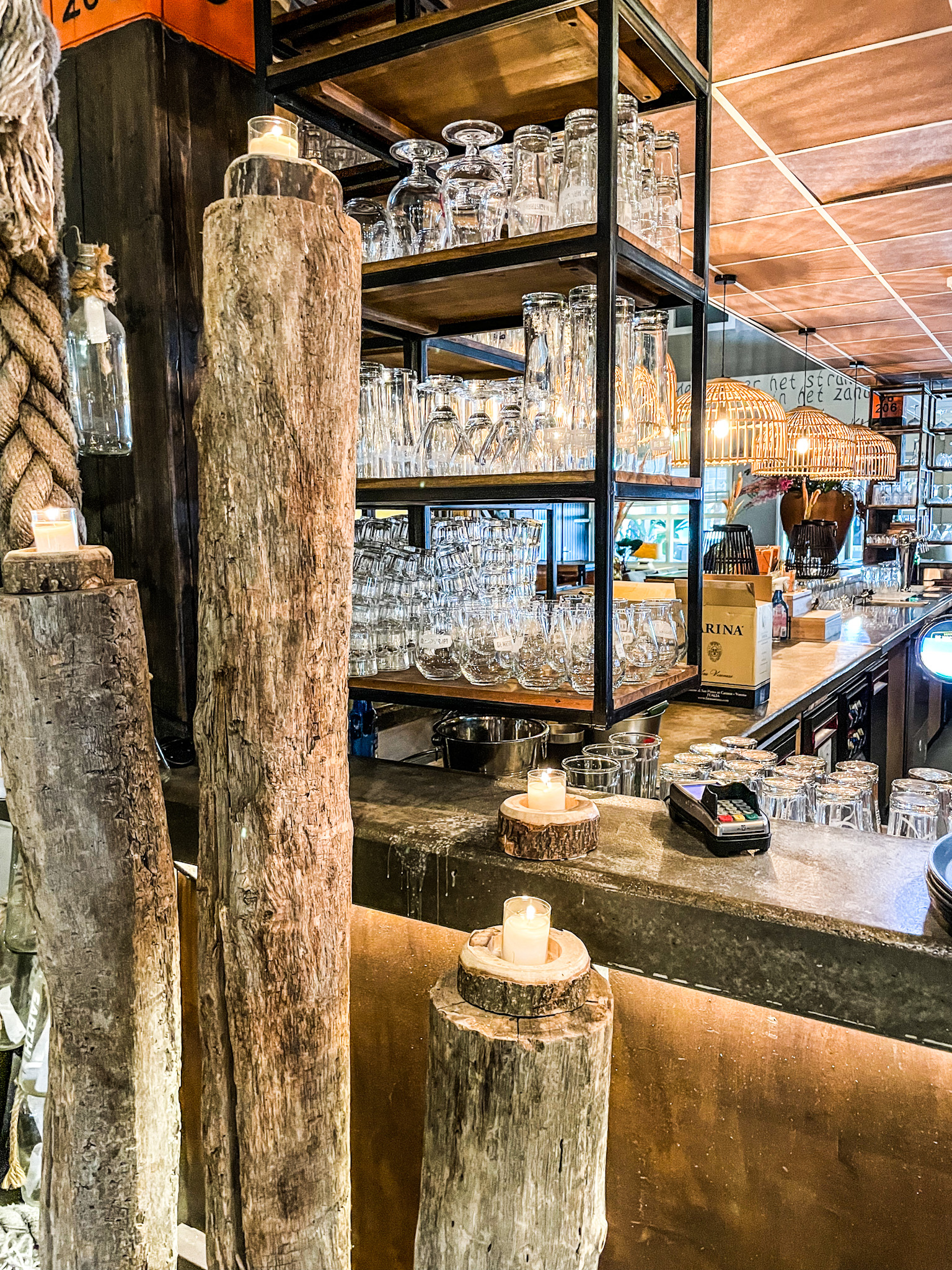 Ein absolutes Highlight für mich als Foodliebhaberin war das Restaurant auf dem Platz. Es gab drei Restaurants auf dem Platz (eines davon eine Snackbar to go) wo es dann in Holland natürlich ein Muss ist Frikandeln mit Pommes zu essen. Ich würde Euch empfehlen einen Tisch zu reservieren, dieses haben wir nicht getan und dementsprechend war es sehr voll und es gab nur sehr spät abends noch einen Tisch drinnen. Aber schaut und überzeugt Euch selbst von diesem schönen Ambiente des Restaurants und der Bar.