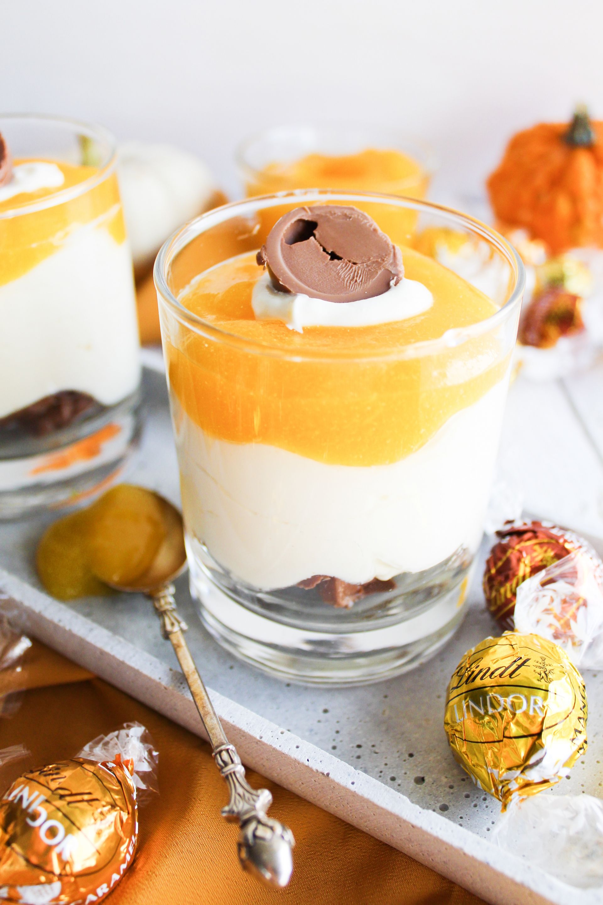 - 9 LINDT Lindor Kugeln in kleine Stücke schneiden und in die Gläser füllen. Darauf nun die bereits fertig Mascarponecreme gießen.