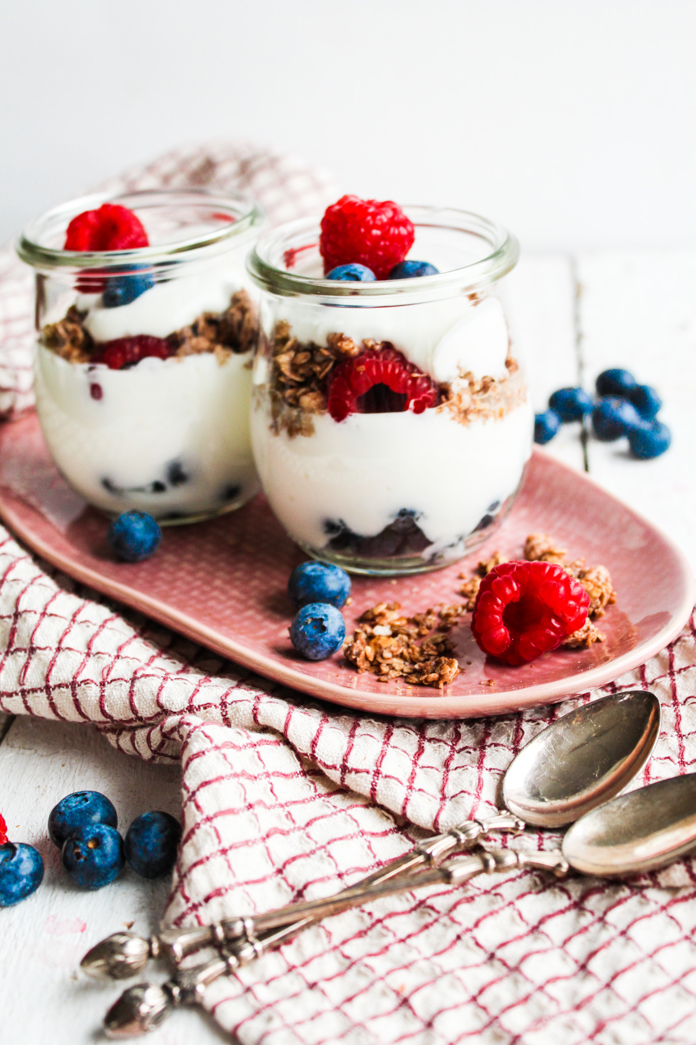 Für Partys zum kleinen Dessert habe ich es auch schon oft gemacht, schnell vorzubereiten und es ist nicht so mächtig. Anstelle des Müslis oder Granola nehme ich dann aber immer etwas anderes. Entweder ihr püriert ein wenig des Obstes und setzt es als Schicht ein oder zerbröselte Kekse machen sich da super drin. Es kommt toll bei den Gästen an und ihr könnt Euch drauf einstellen das ihr nach dem Rezept gefragt werdet 🙂