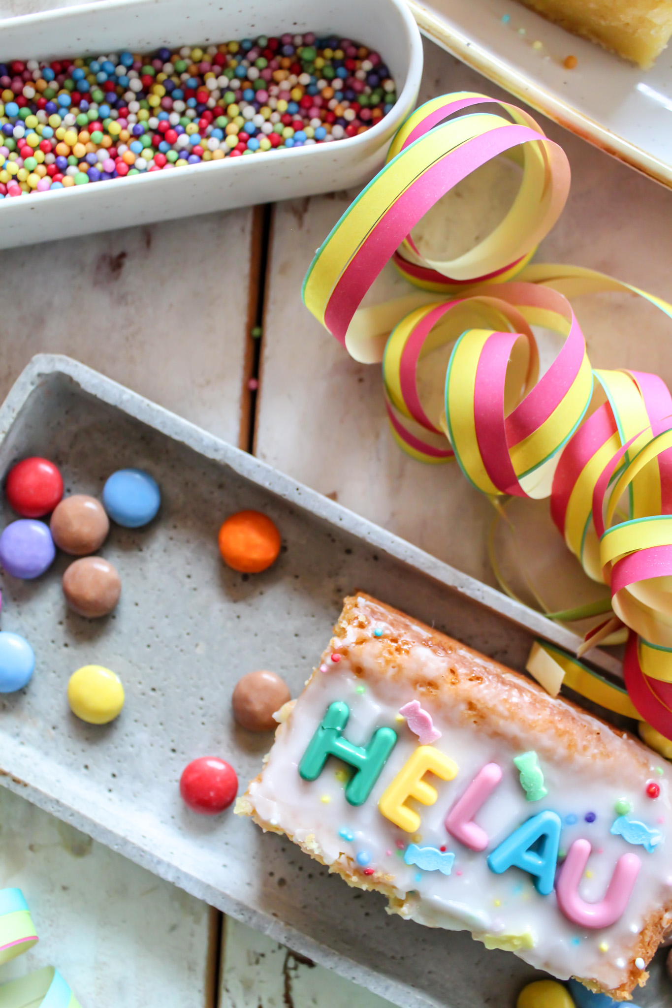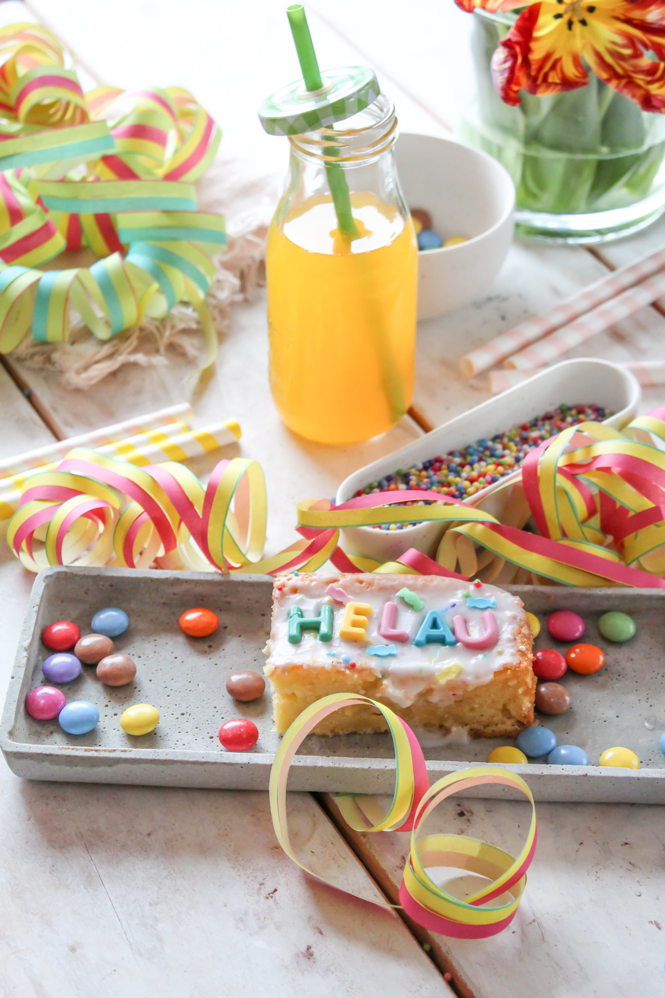 Ich habe hier noch eine tolle KARNEVALS Variante für Euch. Da in diesem Jahr aufgrund von Corona mal wieder kein Karneval stattfinden kann, kann man es sich doch wenigstens Zuhause mit einem Stück Kuchen gemütlich machen. Gerade für die Kids, etwas Luftschlangen auf den Tisch und eine schöne Karnevalsversion aus dem Limonadenkuchen gestalten. Die Kids mitgestalten lassen umso mehr Freude macht es und die Kuchen sehen noch schöner aus.