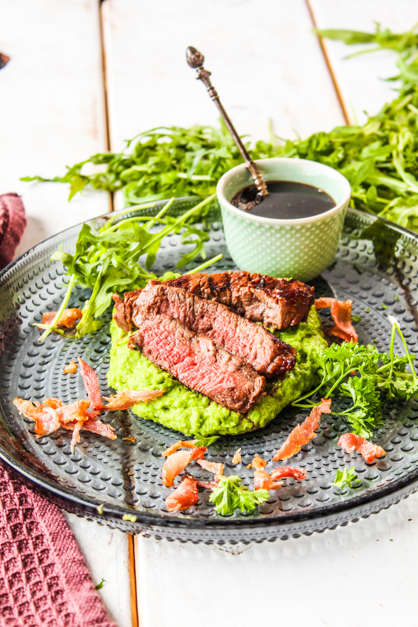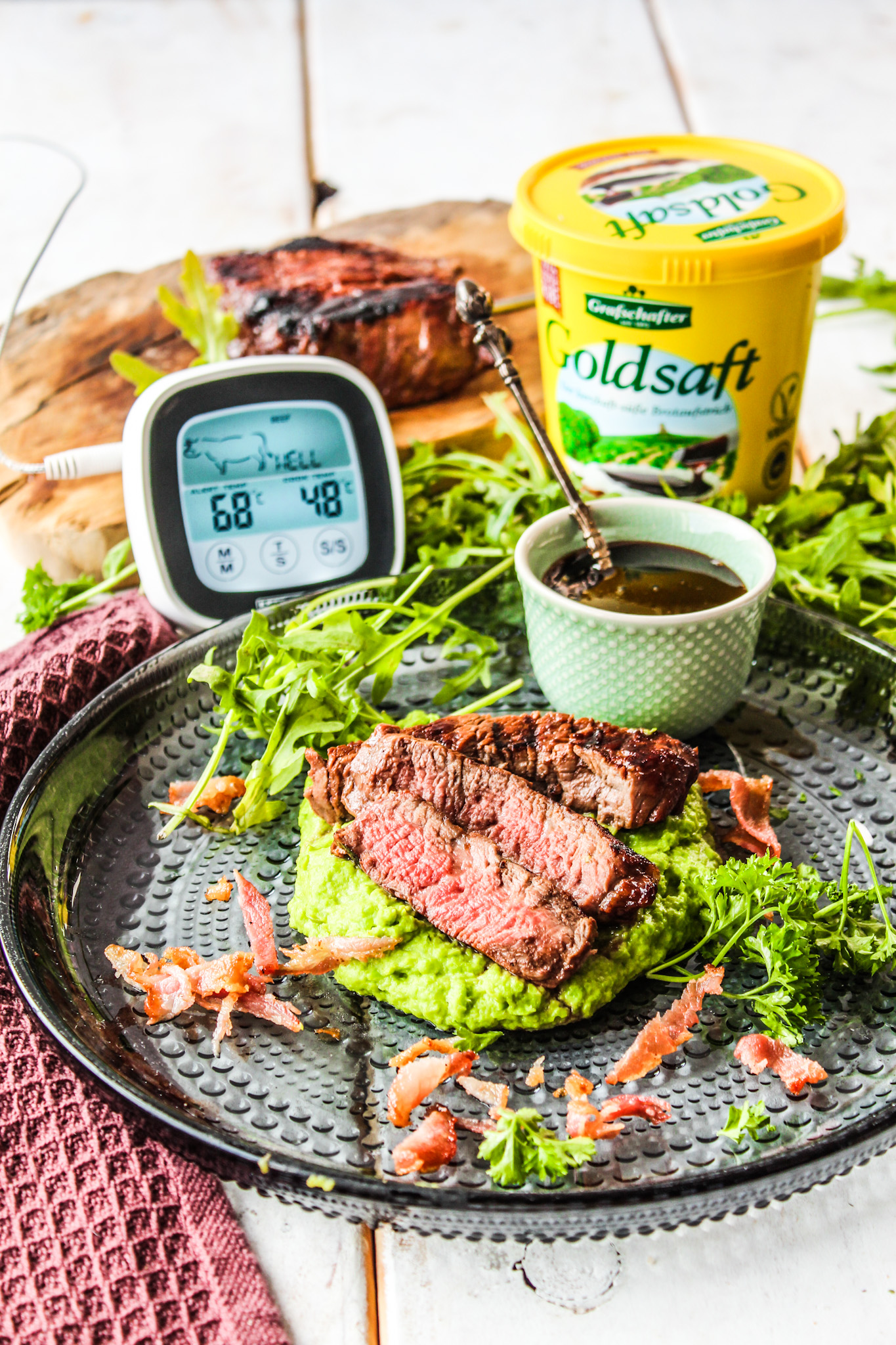 Man könnte sagen, dass ich mich am liebsten mit in das Vakuumiergerät gelegt hätte, so lecker sah es schon aus als ich das Filet mariniert habe. Gerade jetzt in der Grillsaison mache ich, das total gerne neue Marinaden ausprobieren, selbst das Fleisch einlegen und testen. Passend dazu wollte ich immer schonmal ein Erbsen Püree machen und der Bacon passte auch perfekt dazu.