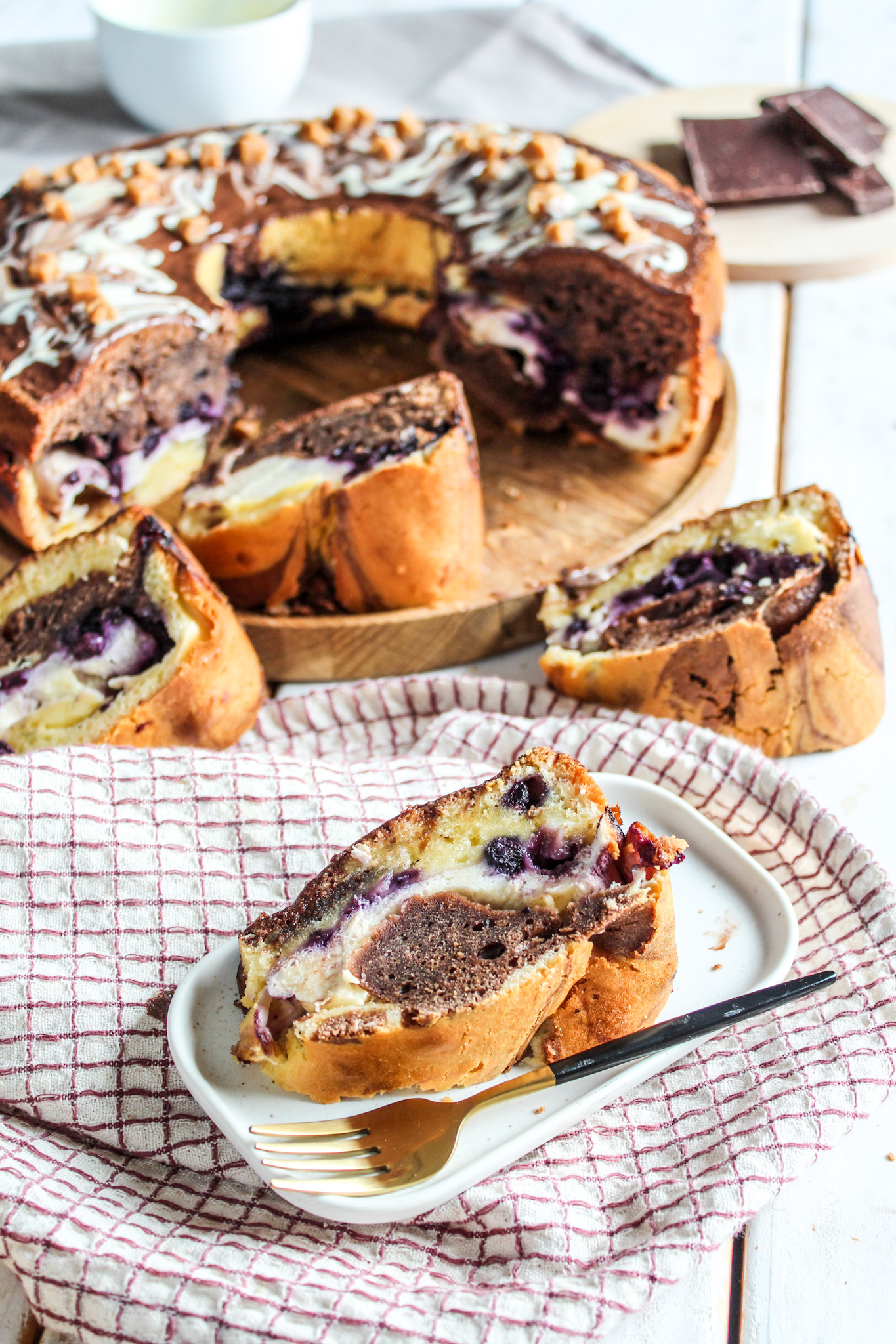 Zwei Klassiker die sich treffen? Ja genau da habt ihr richtig gelesen. Eine richtig leckere Kombination aus dem klassischen Marmorkuchen und einem Cheesecake. Der Kern des Kuchens besteht aus einer cremigen Cheesecakefüllung. Ich wollte aber unbedingt noch etwas Frucht mit einbringen und habe mich da für Heidelbeeren entschieden.