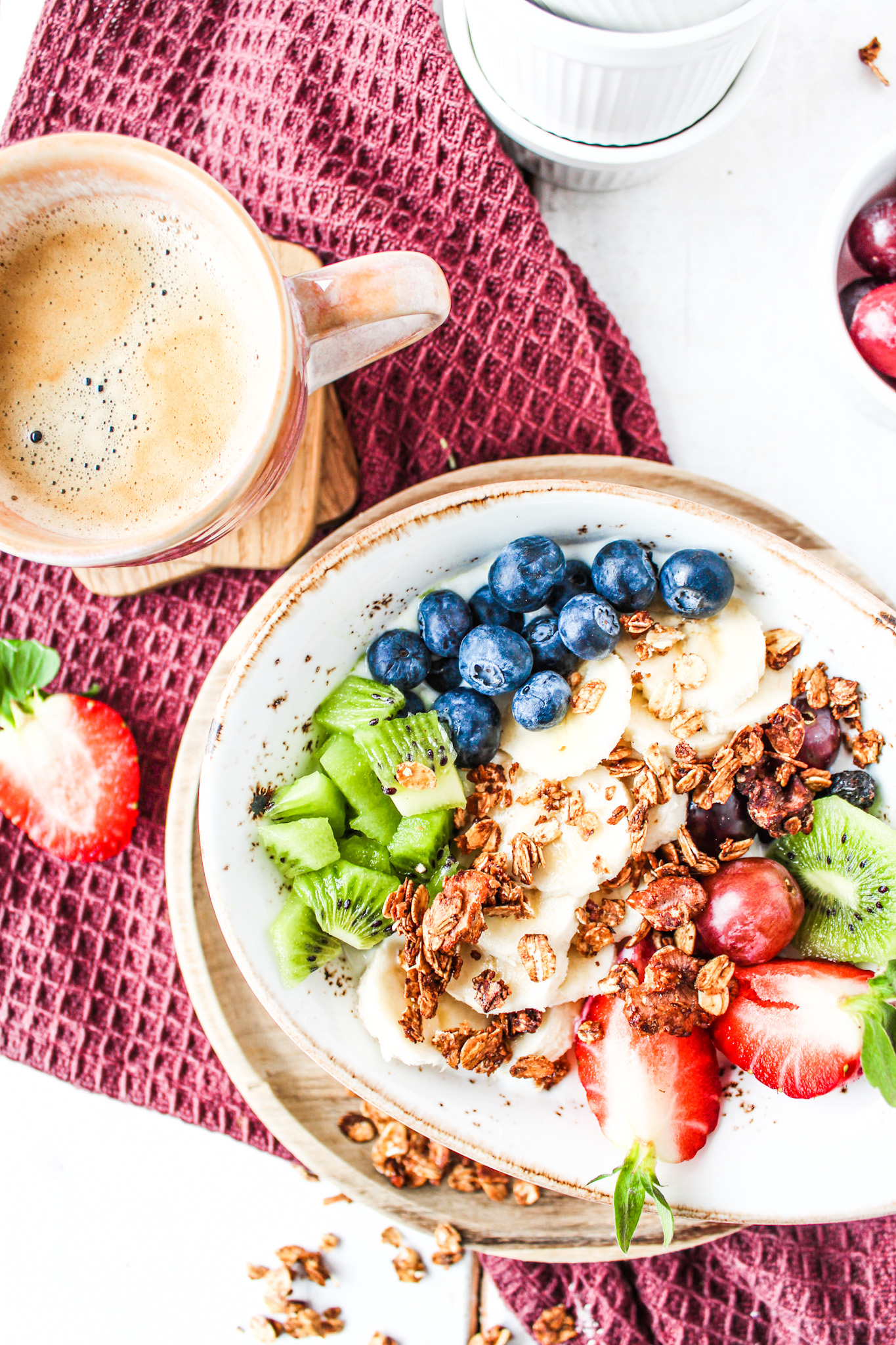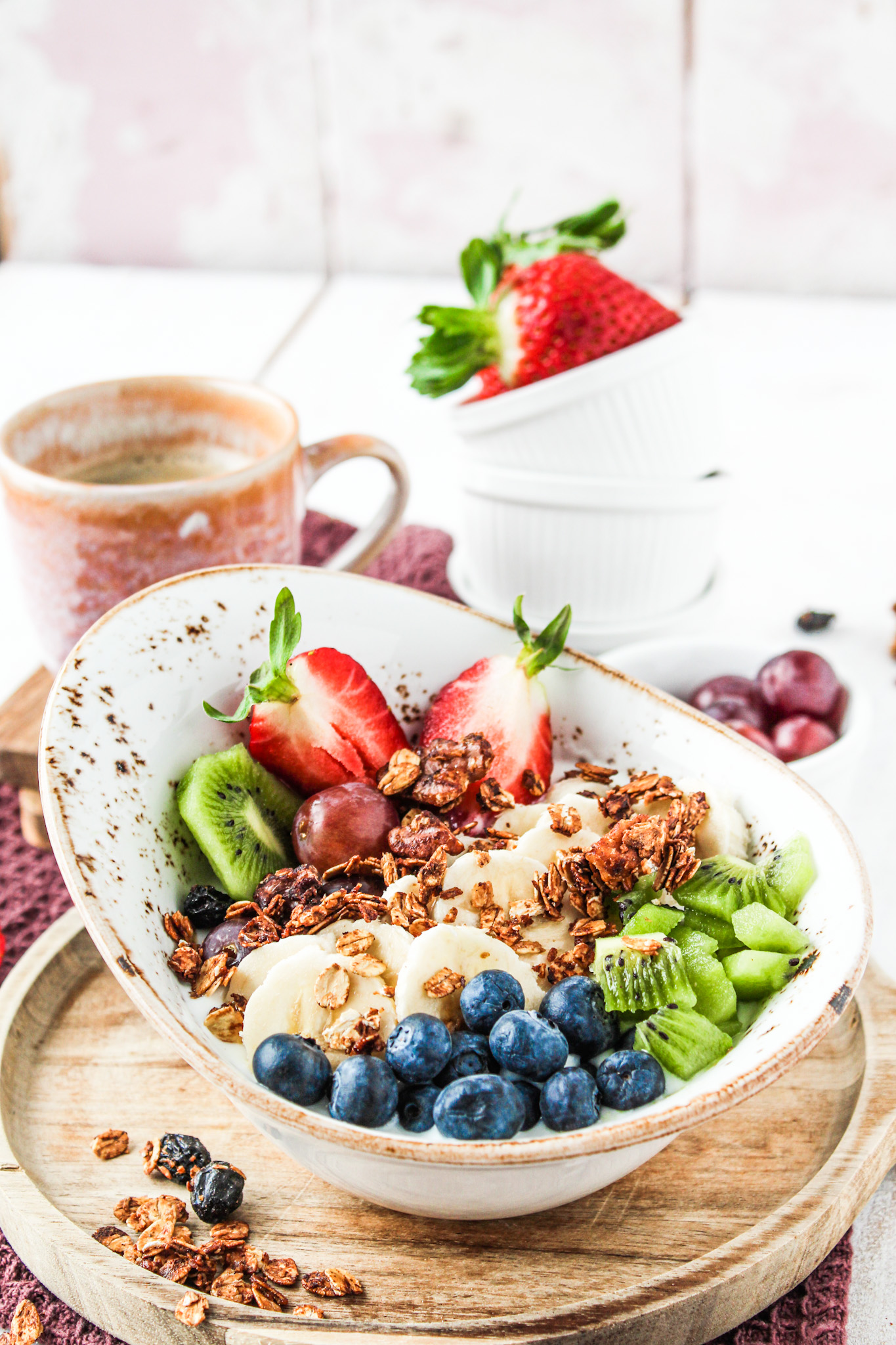 Das Rezept für mein FRÜHSTÜCK ist ziemlich simple, denn eigentlich benötigt ihr nur einfachen Naturjoghurt 0,1 %, Beeren Eurer Wahl und Granola. Noch mehr freue ich mich auf die Zeit des Sommer, die eigenen Beeren aus dem Garten holen in der früh und dann mit hineingeben.