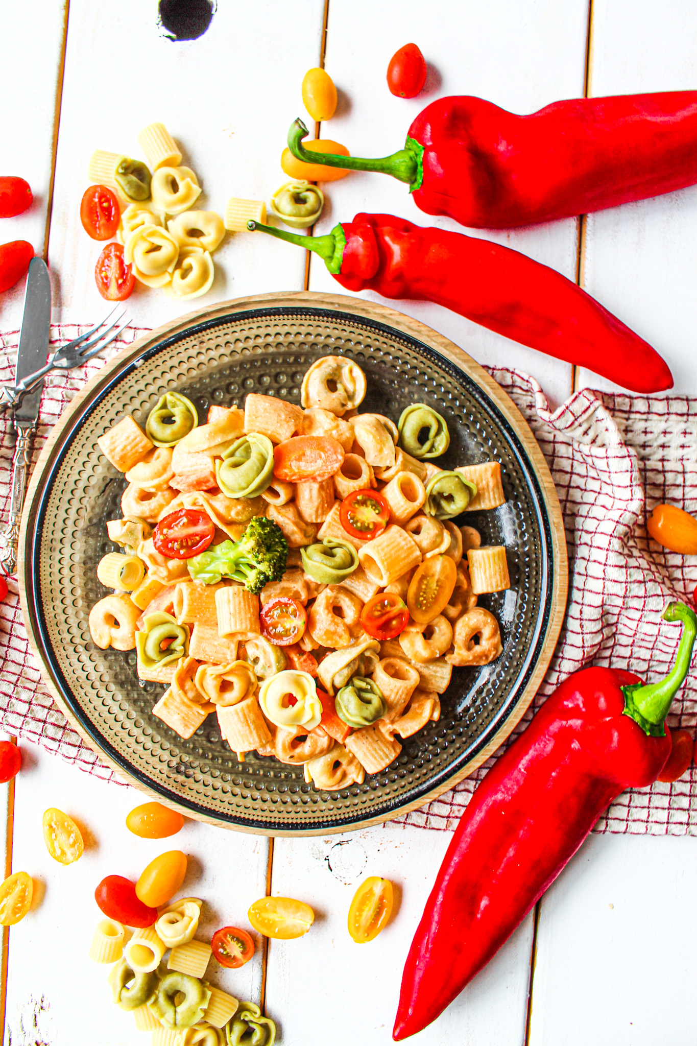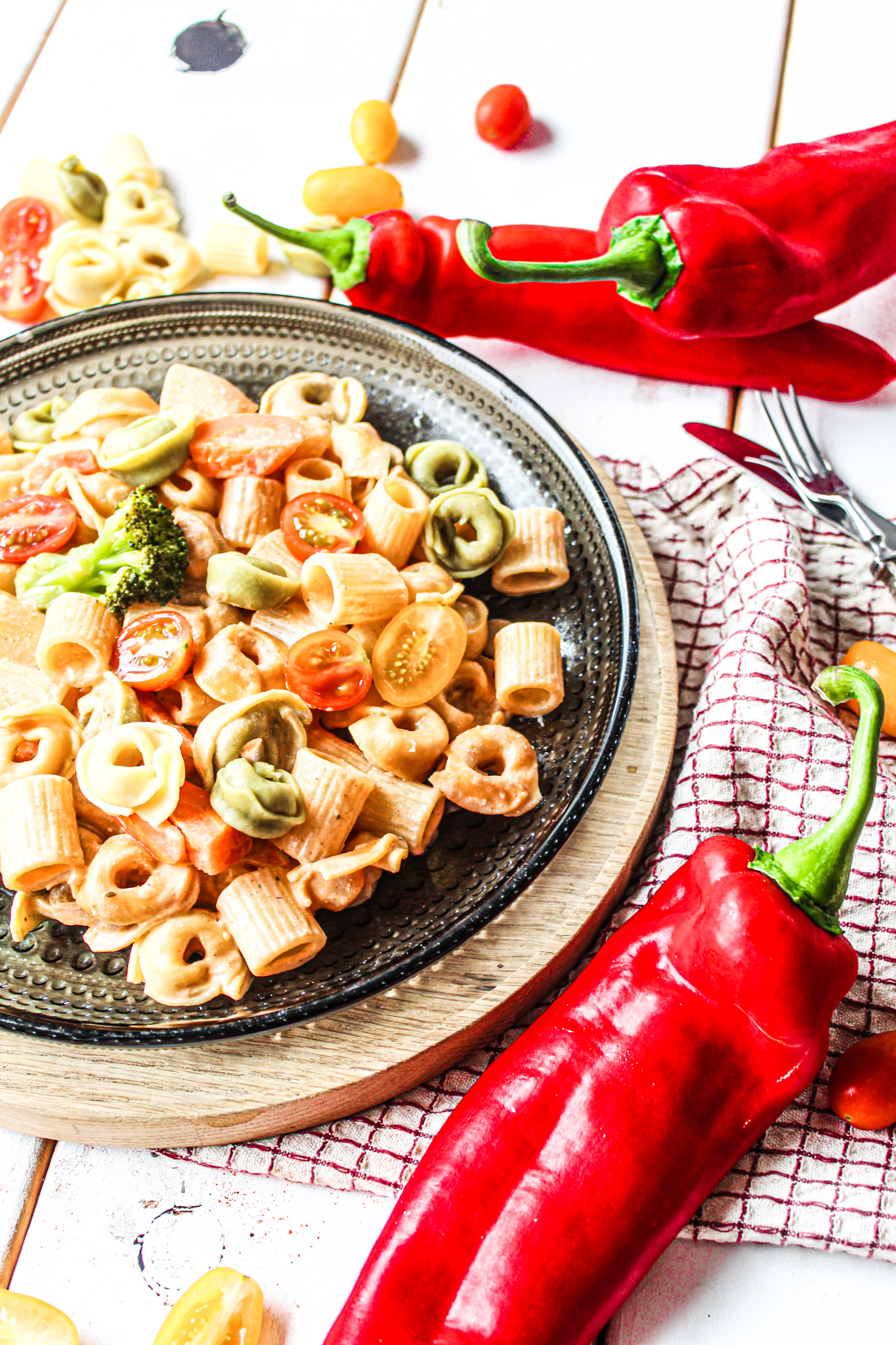 Wenn es mal schnell in der Küche gehen muss, das Kind aus der Schule kommt du aber gerade erst selbst fertig mit der Arbeit bist. Da habe ich ein super Rezept, total easy und lecker. Das Gute dabei ihr könnt einfach dass wählen was ihr noch an Gemüse im Kühlschrank habt. Ich hatte noch Kaisergemüse, Cocktailtomaten und Tortellinis da. Die Soße ist auch total super und kann variiert werden wenn ihr mal eine Zutat davon nicht Zuhause habt. Hier wird die Onepotpasta auf jeden Fall total geliebt.