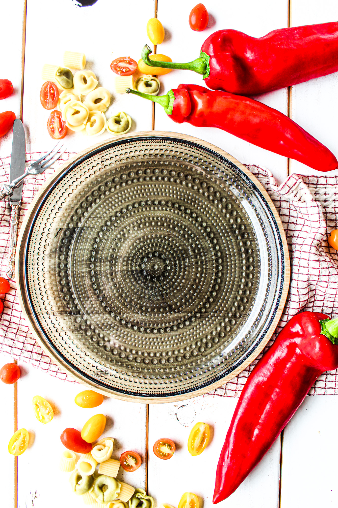 Was ich auch total schön immer finde sind zwei unterschiedliche Teller so hebt es sich nochmal total ab auf dem Bild und wirkt viel schöner. Ich habe hier einen Holzteller und einen normal Glasteller dann aufgelegt. Was ich auch eigentlich immer dabei benutze ist ein Küchentuch mit einer passenden Farbe zu Gericht.