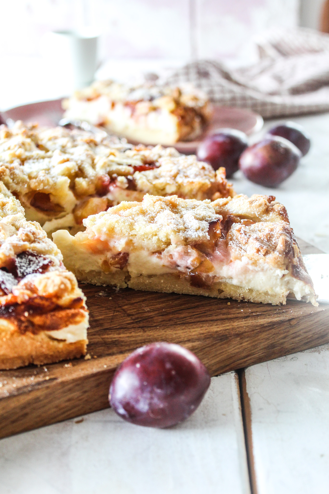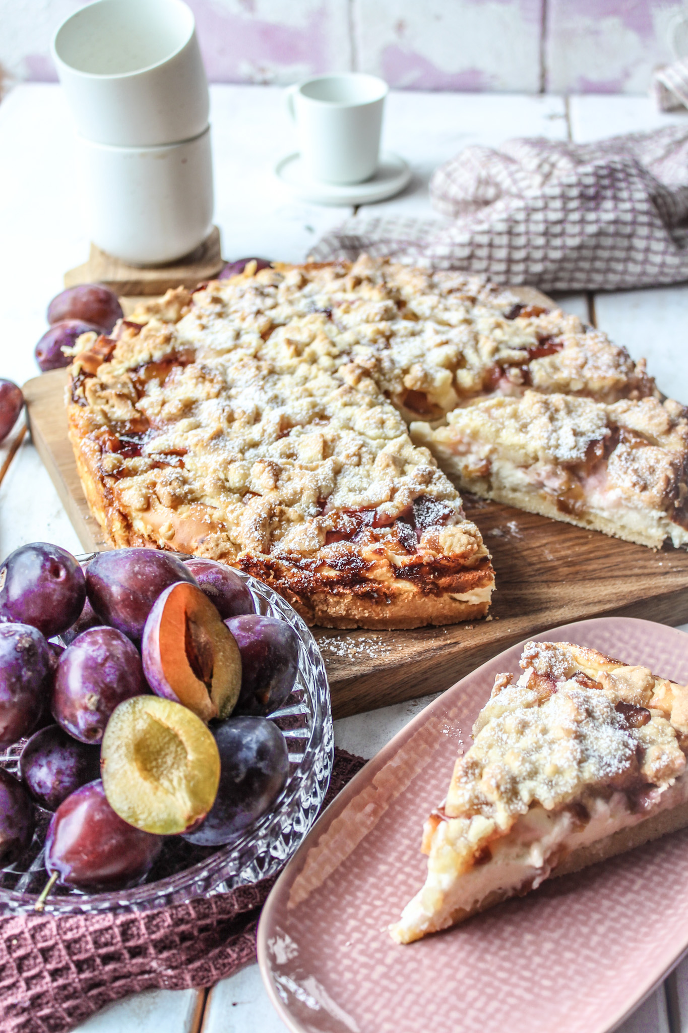 Der Streuselkuchen hier ist jetzt mit Pflaumen gemacht, in dem Rezept könnt ihr es aber natürlich auch genauso gut mit Äpfeln aufkochen und auf die Creme geben. Wichtig ist den Kuchen einen Tag vorher zu machen damit er gut durchziehen kann, so schmeckt er uns auf jeden Fall immer am Besten. Es gibt aber auch die Favoriten, die ihn warm bevorzugen mit einer Kugel Vanilleeis dazu. Ich bin gespannt, wie ihr ihn am Liebsten essen würdet.