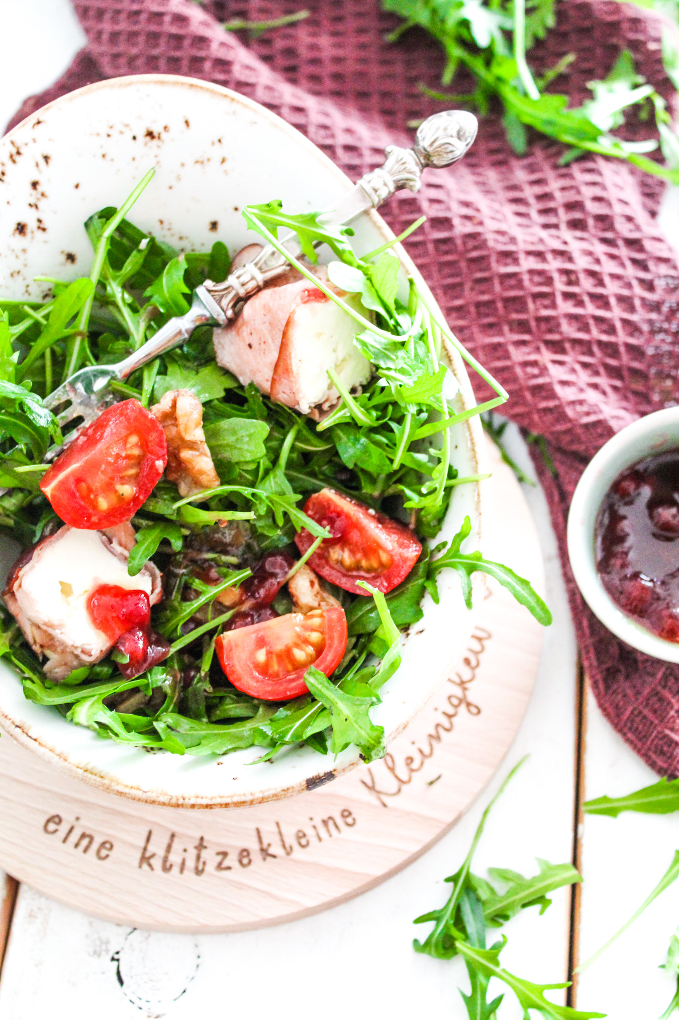 Ich verrate Euch hier ein Rezept einer meiner absoluten Lieblingssalate. Ich esse ihn total gerne sowohl im Sommer als auch im Winter. Super einfach zuzubereiten und schmeckt fantastisch. Die Mischung zwischen dem süßen Preiselbeer Dressing und den herzhaften Feta Schinkenröllchen passt total gut zusammen und ist einfach mal etwas anderes.