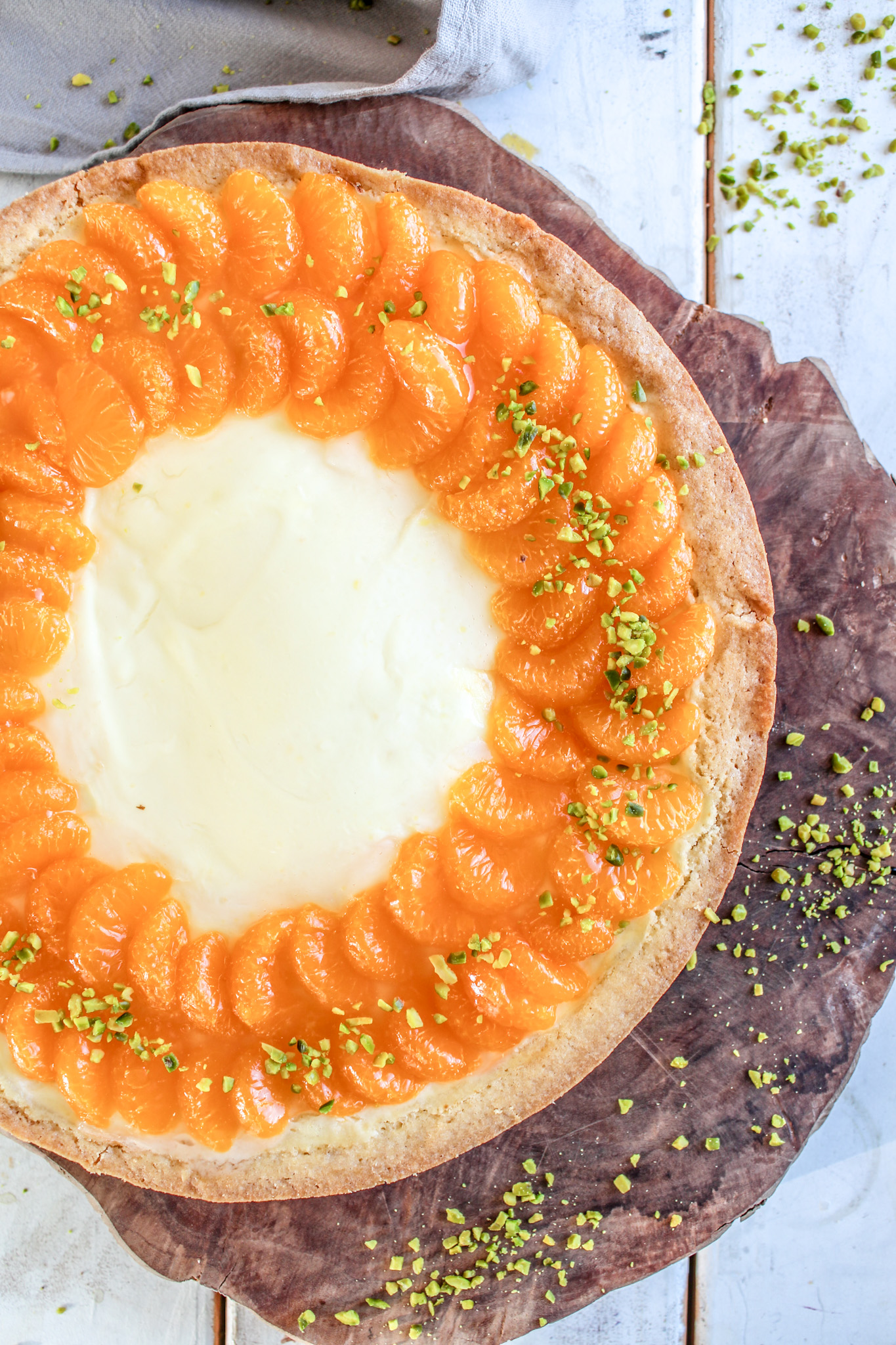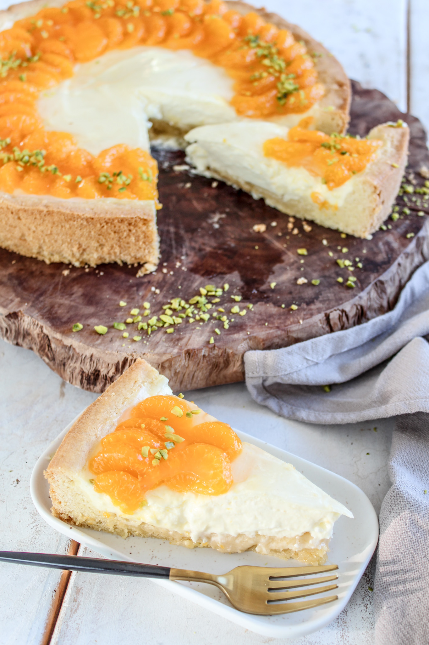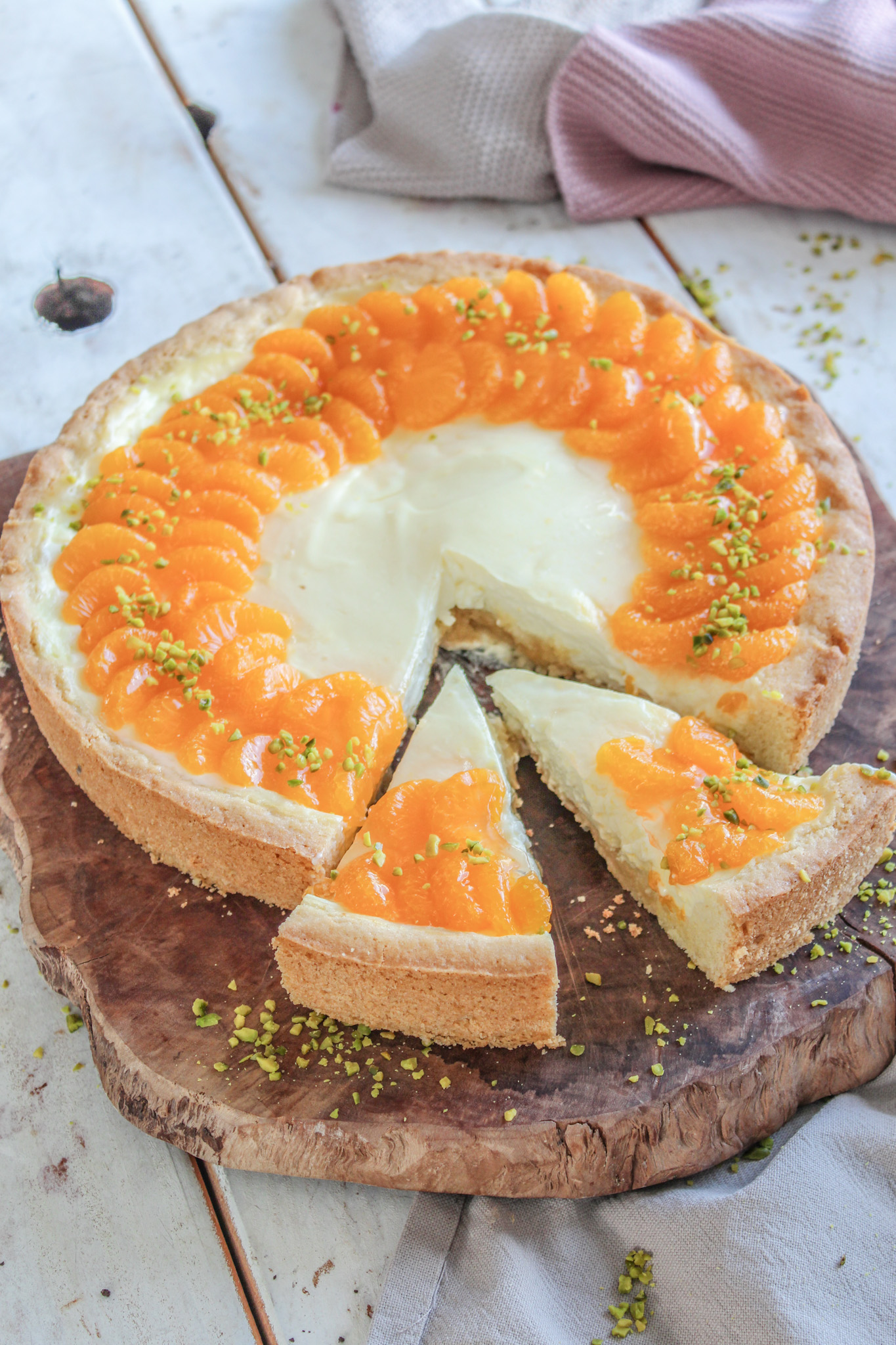 Ich habe hier bei dem Schmandkuchen eine klare Glasur noch über die Mandarinen gegeben. Bei den Mandarinen könnt ihr aktuell zu dieser Jahreszeit natürlich auch die frischen wählen, allerdings habe ich mich für die Dosen entschieden. Schmecken tun sie beide richtig lecker auf dem Kuchen. Beim Topping um noch etwas für das Auge zu haben, sind einfach ein paar Pistazien zerstreut auf dem Kuchen.