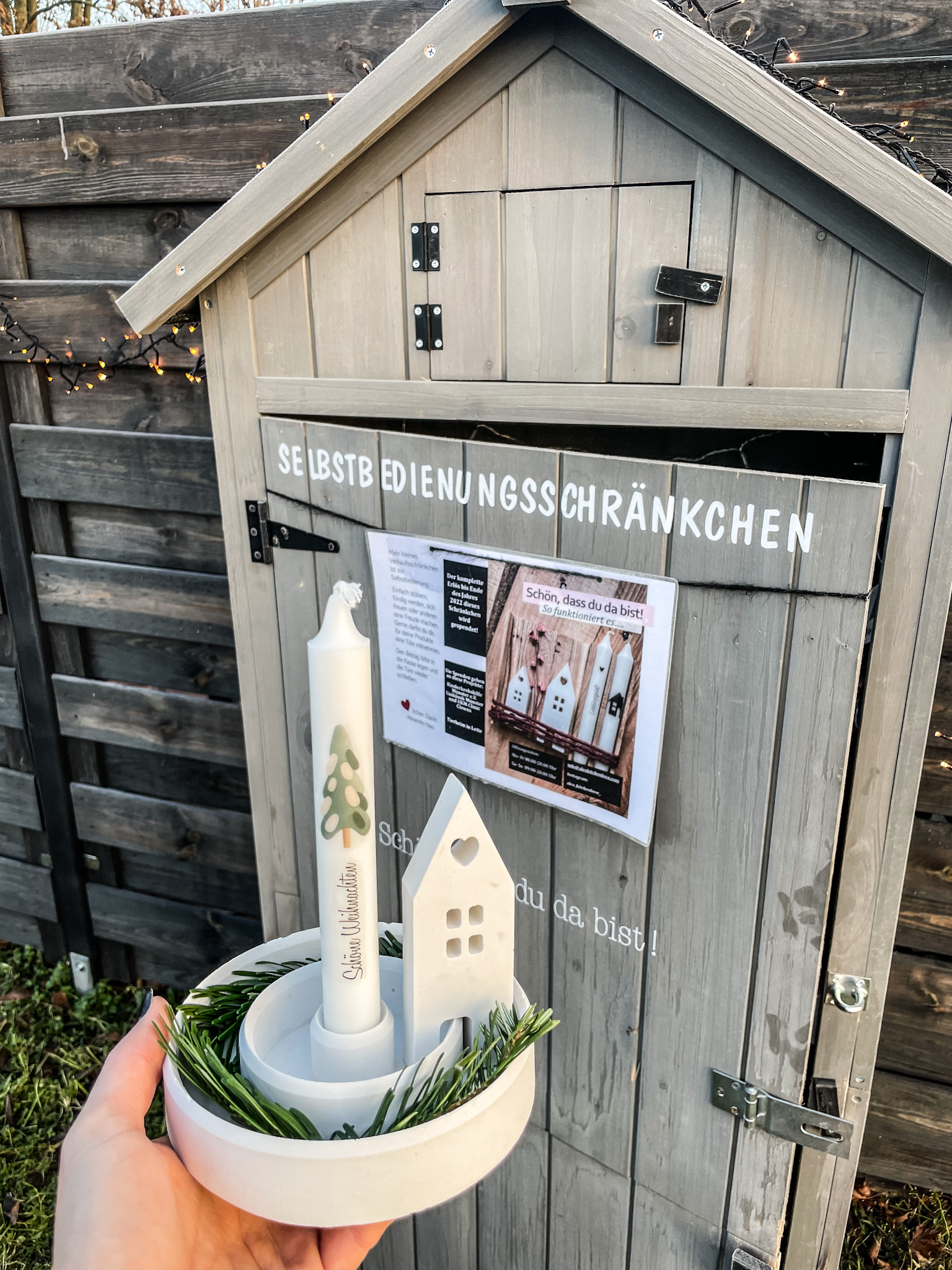 Mein Mann und ich sind dann eines Tages essen gefahren und haben lange darüber gesprochen wie ich das noch schaffen soll zeitlich und ob es nicht zu viel wird. Und dann kam das Thema: Spendenaktion in unsere Gedanken. Es hat mich so sehr gepackt,dass mir ab dem Zeitpunkt klar war. Alex du musst das einfach machen. Nun war mein Ziel bis Ende des Jahres 2023 so ein Selbstbedienungsschränkchen zu bauen und damit SPENDEN für einen GUTEN ZWECK zu sammeln.