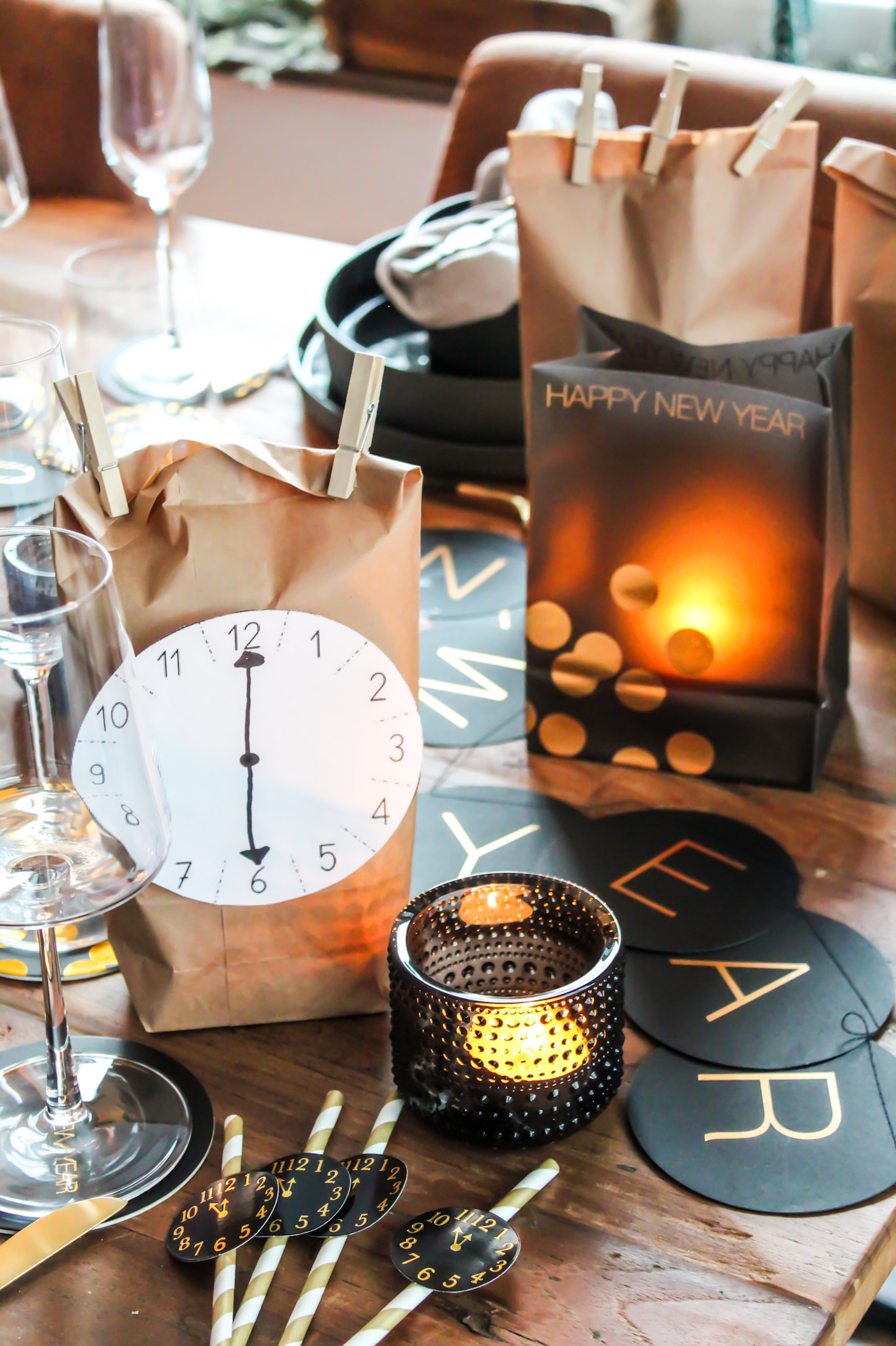 Ich habe für die Kids kleine COUNTDOWN Tüten fertig gemacht. Ab 18:00 Uhr wird der Countdown gezählt und die Kids dürfen zu jeder vollen Stunden eine Tüte öffnen. Überraschungen stecken in jeder Tüte, die für einen tollen Silvesterabend sorgen werden für Jung und Alt:) Ihr kennt mich in Sachen Deko mittlerweile und ich versuche es immer schön herzurichten, dass selbst die Kids strahlende Augen bekommen und diese Abende immer in toller Erinnerung behalten werden.